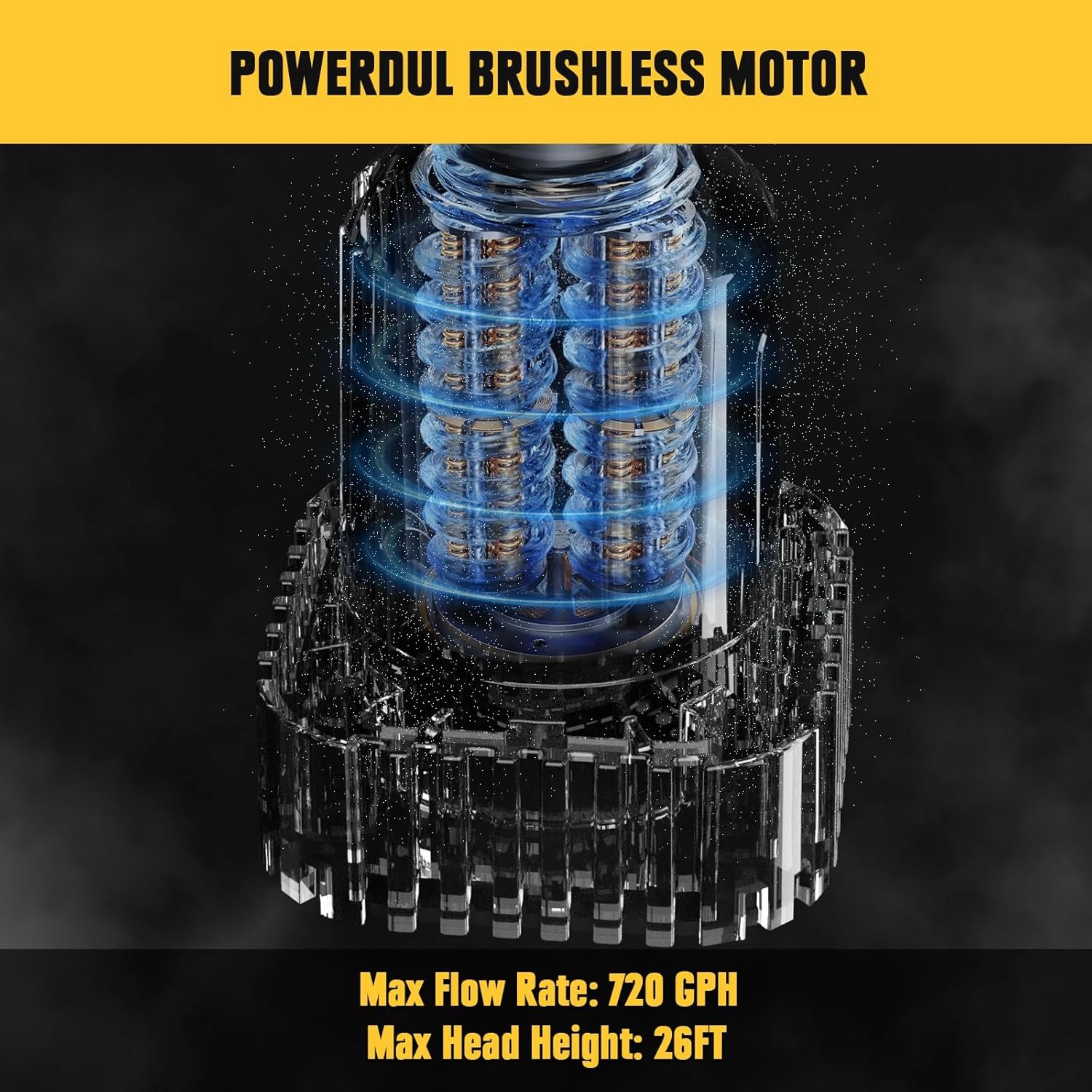 Equipped with a reliable brushless motor and standard ¾″ outlet compatible with most garden hoses, ensuring long-lasting performance and easy water transfer.