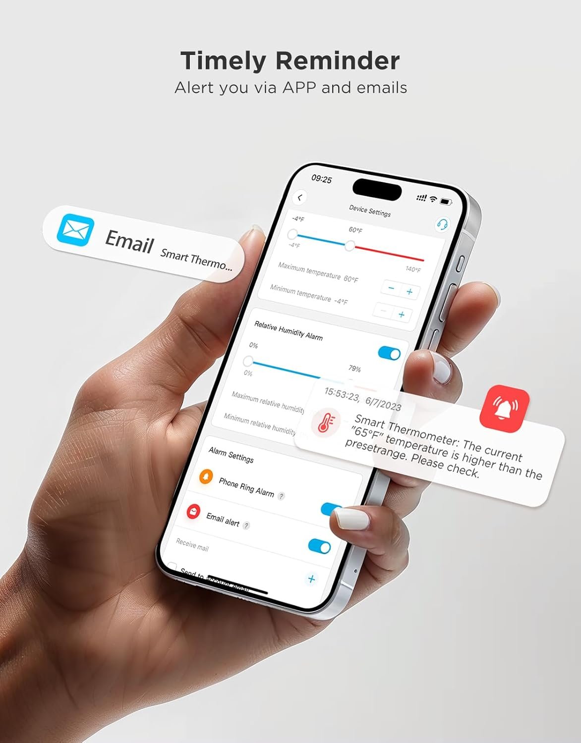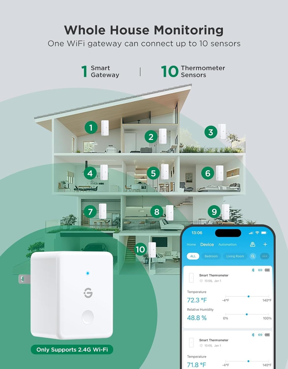 Connected to 2.4 GHz WiFi, the sensor sends immediate notifications when levels exceed your set thresholds—perfect for wine cellars, basements, greenhouses, and storage areas.