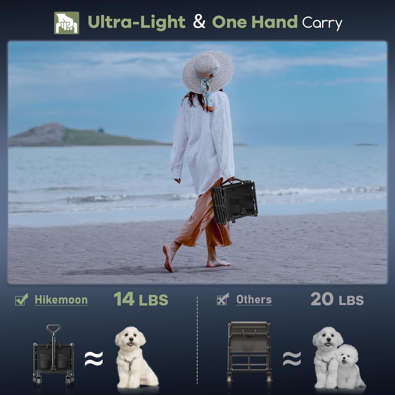 The Hikemoon collapsible wagon combines extra length, high load capacity, and lightweight design for effortless gear transport.