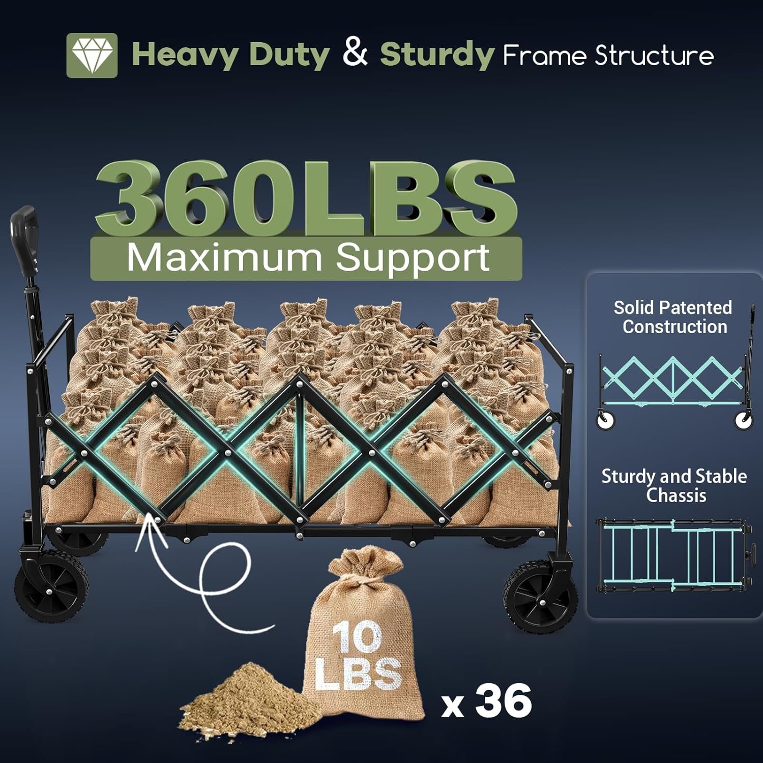 Supports up to 360 lbs (~163 kg) while maintaining a compact, lightweight frame of only ~14 lbs (~6.4 kg), making it ideal for heavy-duty hauling.