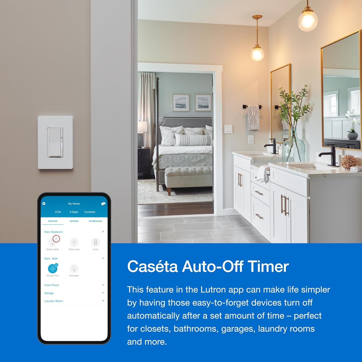 - Smart home integration with Caséta app, Pico remotes, and motion sensors