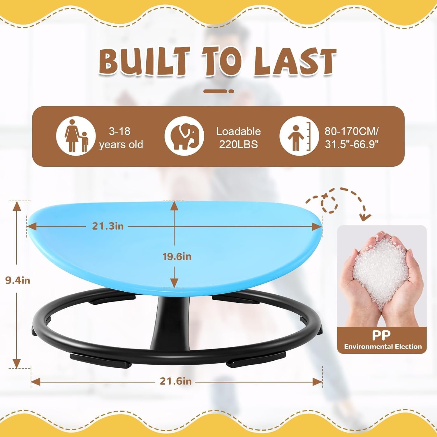 Encourage development and fun with the Zhenx Spinning Chair, featuring a 360° swivel seat and strong metal base that supports up to 220 lbs. Perfect for kids and teens who benefit from sensory movement, it helps enhance balance, coordination, and focus, making it ideal for children with ADHD or autism. Engineered for comfort and safety—click to explore full specs and bring active play into your space.